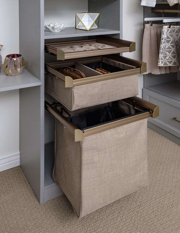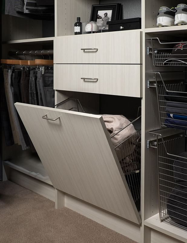 - Our efficient use of space includes multiple hanging areas, jewelry drawers, jewelry racks, shoe displays, easy-to-adjust shelving, tilt-out hampers, baskets, and specialty racks